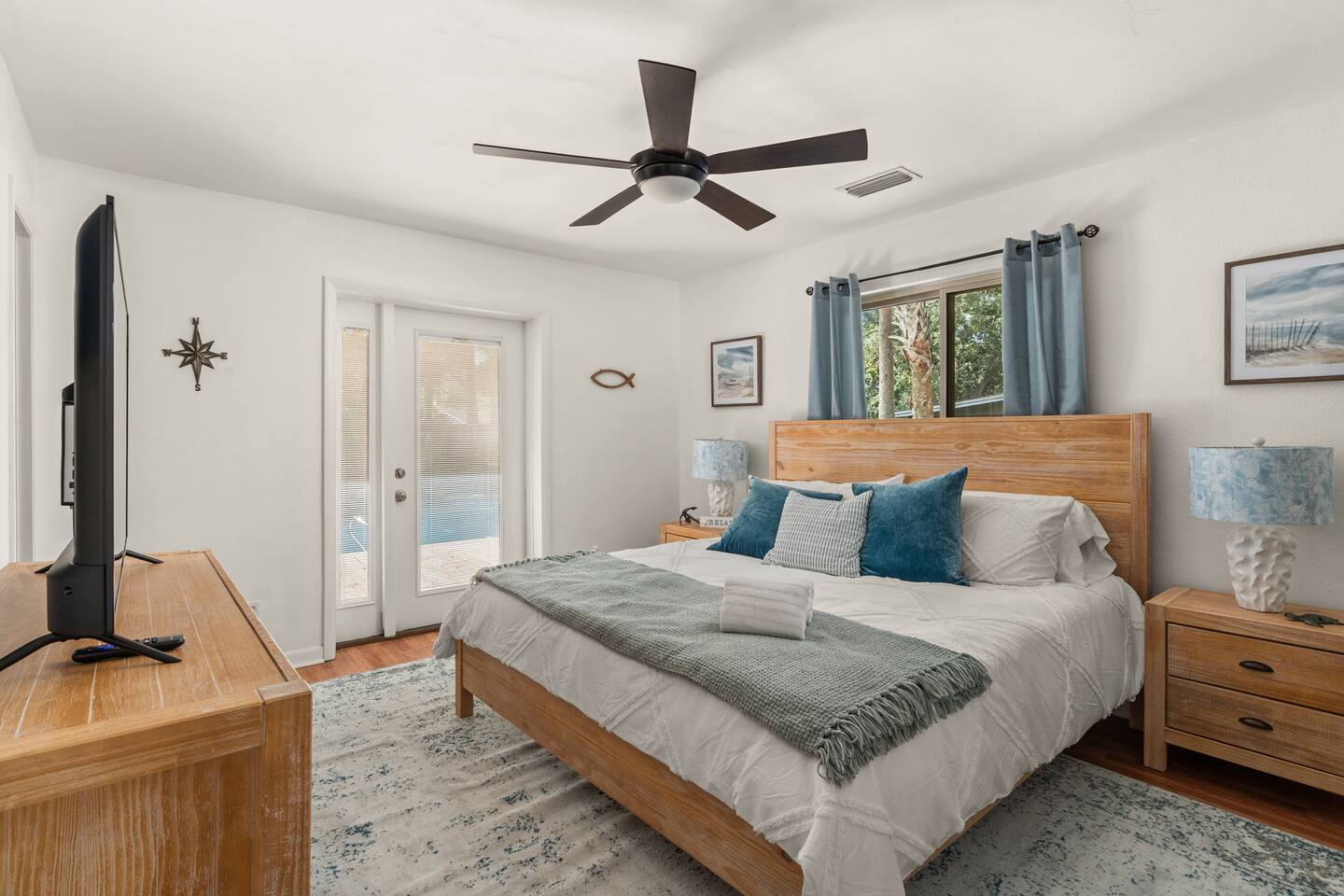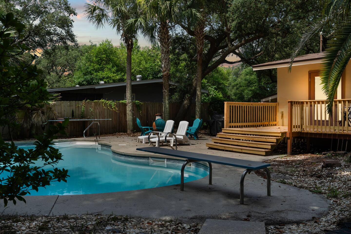 Unwind in this comfortable 3 BD/2BA home with a private pool just minutes from the white sands of Pensacola Beach. Enjoy a bright, open living area, fully equipped kitchen, and a backyard oasis with a sparkling pool, lounge chairs, and a grill. The master suite features an en-suite bath, with flexible sleeping in two guest rooms and a game room for added fun. Whether you're grilling dinner, taking a dip, or simply enjoying the Florida breeze, it's perfect for a family-friendly coastal escape!